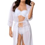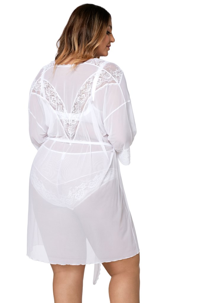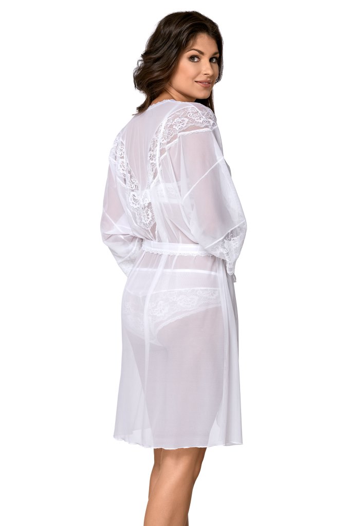 Очаровательный пеньюар арт. 001 из прозрачной вуали, глубокий вырез на груди декорирован, как и спинка, изящным кружевом, рукава 3/4 с кружевом.001 пеньюар