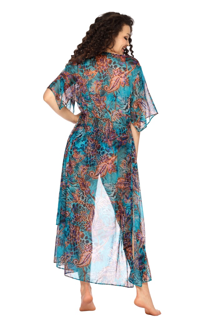 Пеньюар арт. 008 длинный, с коротким рукавом, по бокам высокие разрезы, на талии пояс.008 пеньюар