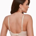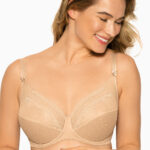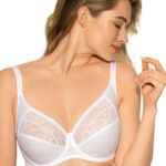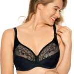 Бюстгальтер 059 выполнен на косточках, чашки мягкие, шитые из неэластичной ткани, из тонкой сетки в крапинку, продублированной неэластичной тканью, и широкого кружева с геометрическим рисунком, спинка из стабилизирующей сетки. Бретельки не отстгиваются, регулируются по длине, на спине застжка - удлинитель на крючках, фурнитура металлическая крашеная. Бюст сочетается с трусами 059 .059 Nancy M бюст