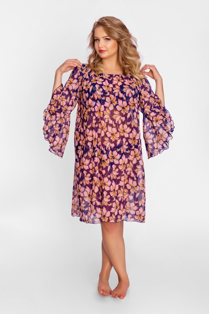 Пеньюар из вуали с цветочным принтом, горловина на резинке, рукава с воланами.1 пеньюар