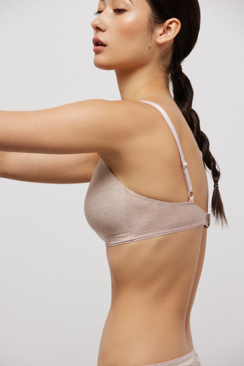 Комфортный бюстгальтер от испанского бренда Ysabel Mora. Выполнен из органического хлопка с небольшим добавлением эластана. Бюст с чашкой из тонкого поролона без каркасов, треугольные чашки, несъёмные бретели регулируются по длине, застежка на спине. Европейский размер соответствует российскому размеру!