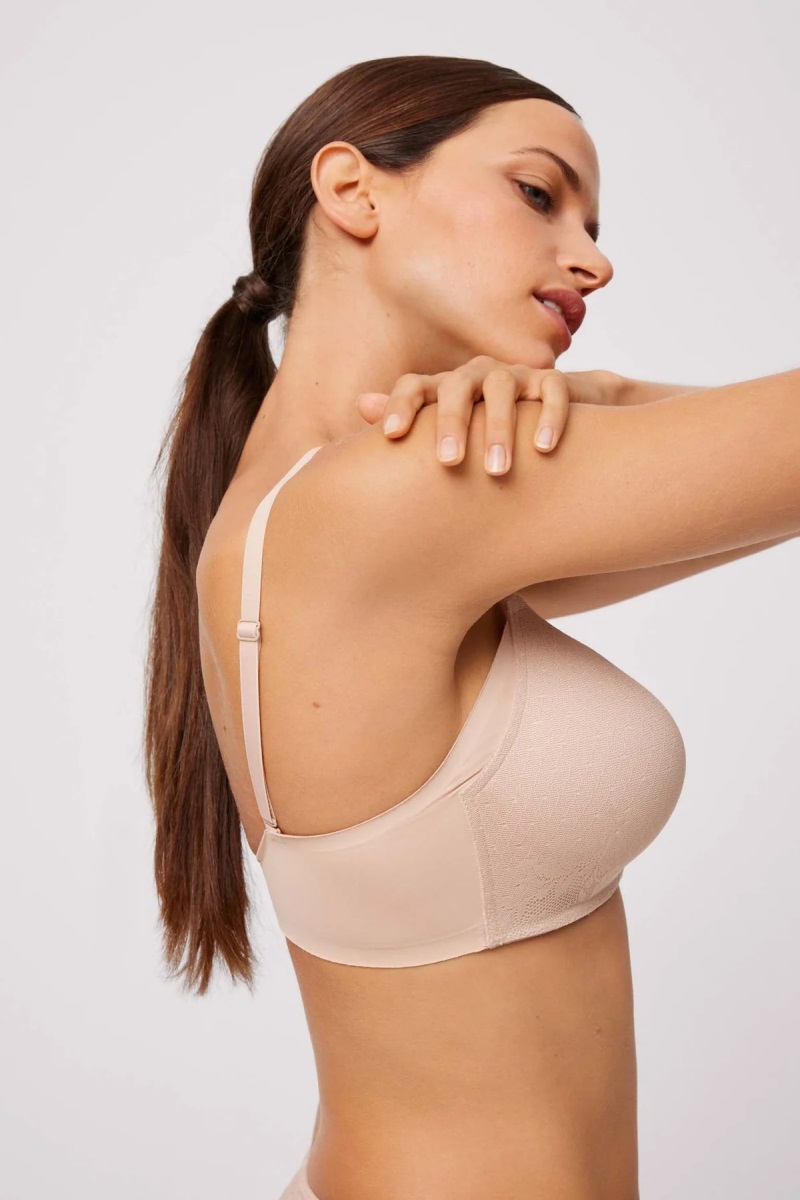 Бюстгальтер с чашкой из тонкого поролона на косточках. Чашки покрыты тонким кружевным принтом. Возможность перекрещивания спины. Сзади бретели съемные. Максимальный комфорт, универсальность и дизайн в одном бюсте. Европейский размер соответствует российскому размеру!10124 Бюст