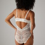 Боди с глубоким вырезом и несъемными регулируемыми бретелями идеально подходит для ношения под одеждой с открытым вырезом или для создания соблазнительного образа. Чашки на косточках с эффектом пуш-ап. Боди выполнено из кружева и плюмети.10692 Боди