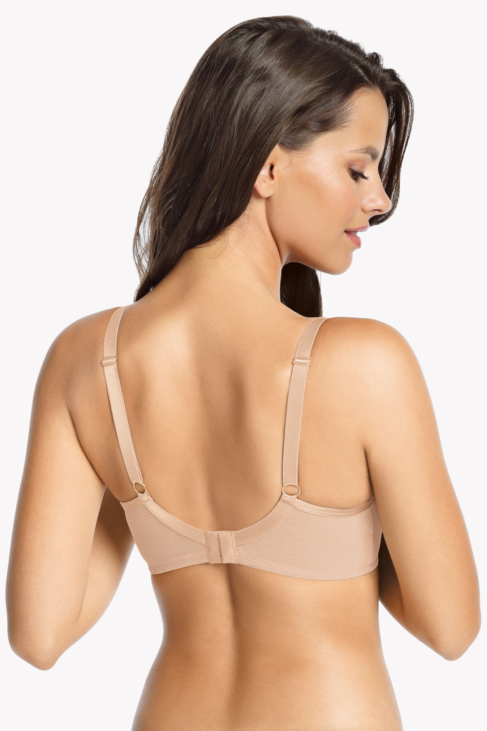 Бюстгальтер 1082 выполнен на косточках, термоформованные чашки с небольшим несъемным пуш-апом не имеют швов и не раздражают нежную кожу груди, пояс из ажурной сетки продублирован сеткой в тон. Бретельки не съемные, регулируются по длине. На спине застжка на удлинитель, фурнитура металлическая цвета желтого золота. Бюстгальтер практически незаметен под одеждой.1082 Gaja U бюст