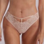 Кружевные трусики бразильяно 1103/3-B LUNA комфортной средней посадки. Декор - золотой аксессуар. Ластовица хлопковая. Изысканный дизайн и высокое качество изготовления.1103/3-B LUNA BEZ Трусы бразильяно