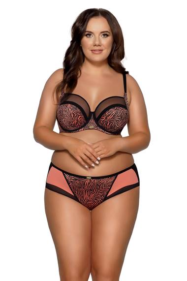Трусики слип со средней линией талии 1130/3 выполнены спереди из неэластичного трикотажа с хищным принтом, со вставками из микрофибры цвета коралла и черной сетки, спинка из черной микрофибры, поймы ног из сетки. Ластовица проложена 100 хлопком. Трусики идеально комплектуются с бюстгальтером арт. 1130/3.1130/3 трусы