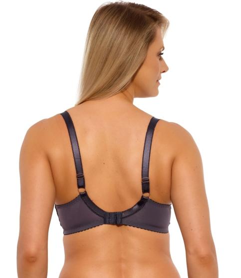 Бюстгальтер 1134 выполнен на косточках, с дополнительными боковыми поддержками, чашки шитые, нижняя часть на тонком поролоне, внутренняя сторона прошита хлопковым трикотажем, верхняя часть чашки из тонкой сетки, внешняя часть из кружевного полотна с растительным рисунком, спинка из стабилизирующей сетки. Бретельки не отстгиваются, регулируются по длине, на спине застжка - удлинитель на крючках, фурнитура металлическая крашеная. Бюст сочетается с трусами 1135 , 1134 .1134 Keto PU бюст (графит)