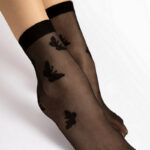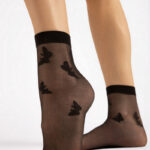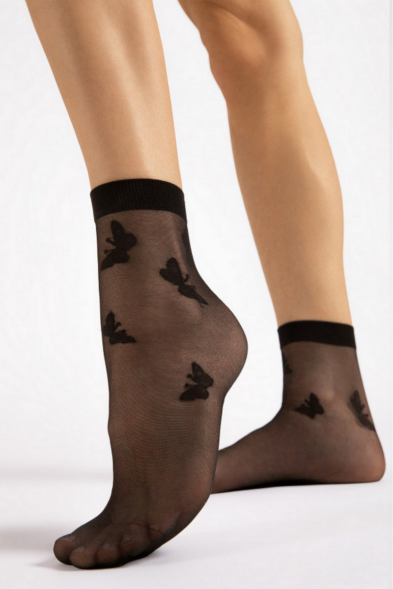 Тонкие и прозрачные носки с принтом бабочки, плотность 15 DEN. Носки подходят ко всем весенним и летним ботинкам. Шелковистые матовые носочки. Невидимое усиление, гладкая часть в области пальцев.