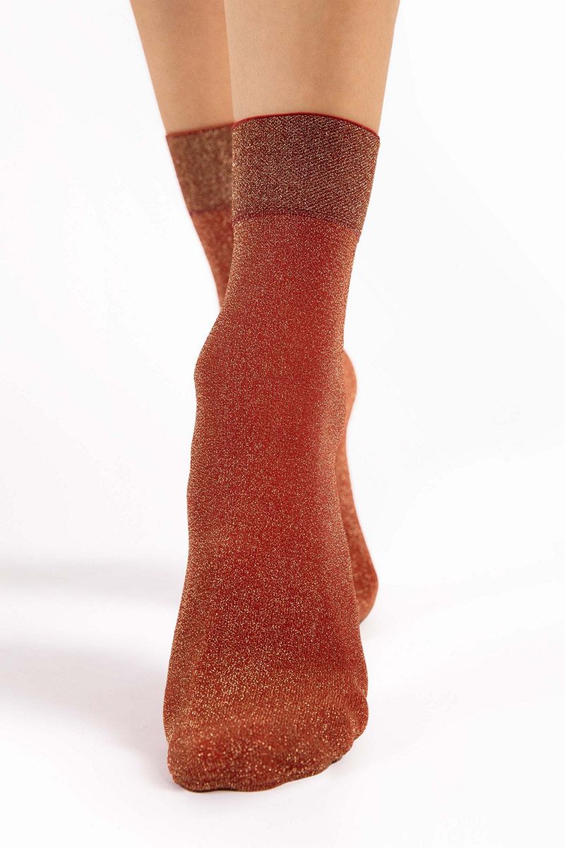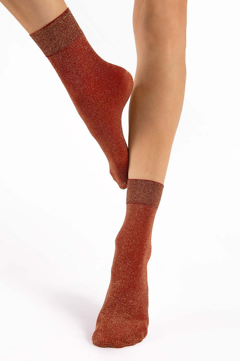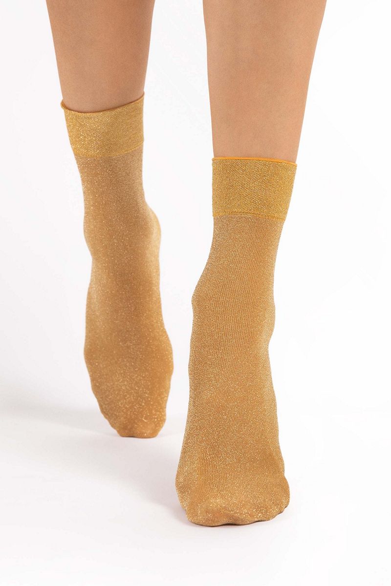 Мерцающие носки изготовлены по 3D-технологии с добавлением золотистого люрекса. Самый праздничный вариант этого сезона. Также подходит для повседневной носки. Блестящие люрексовые носки для любителей гламурного стиля - технология 3D обеспечивает превосходную прочность, гибкость и прилегание к ноге. Удобная, не сдавливающая манжета и невидимо укреплённый носок. Пряжа от ведущих европейских поставщиков.1178/G BRILLO 60 DEN Носки женские