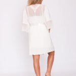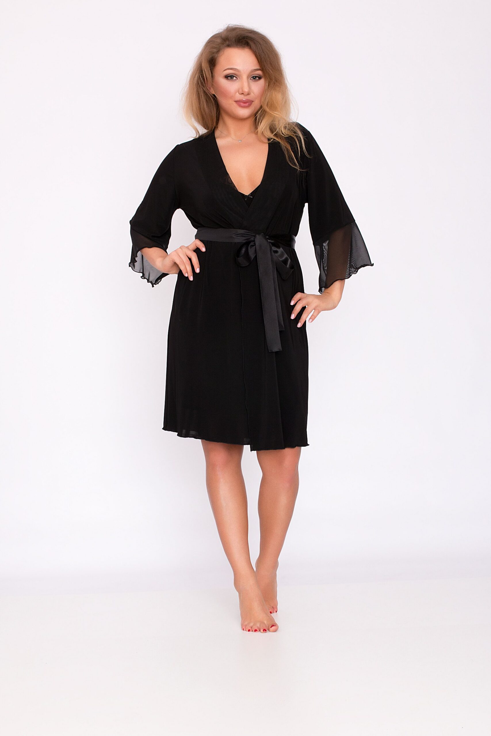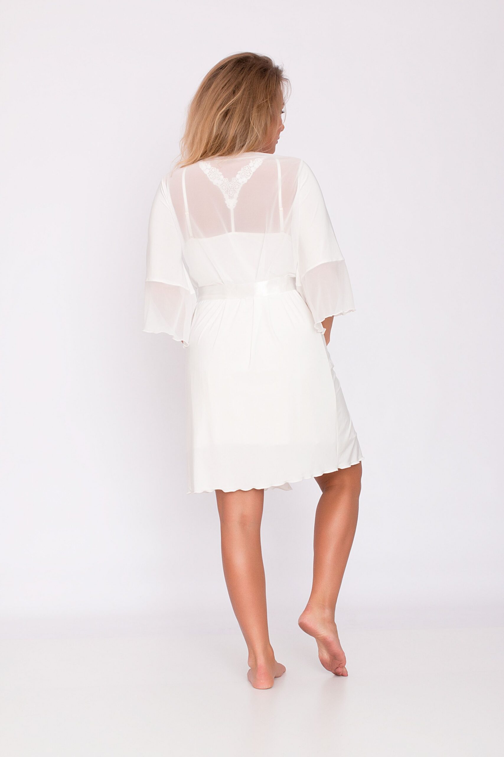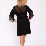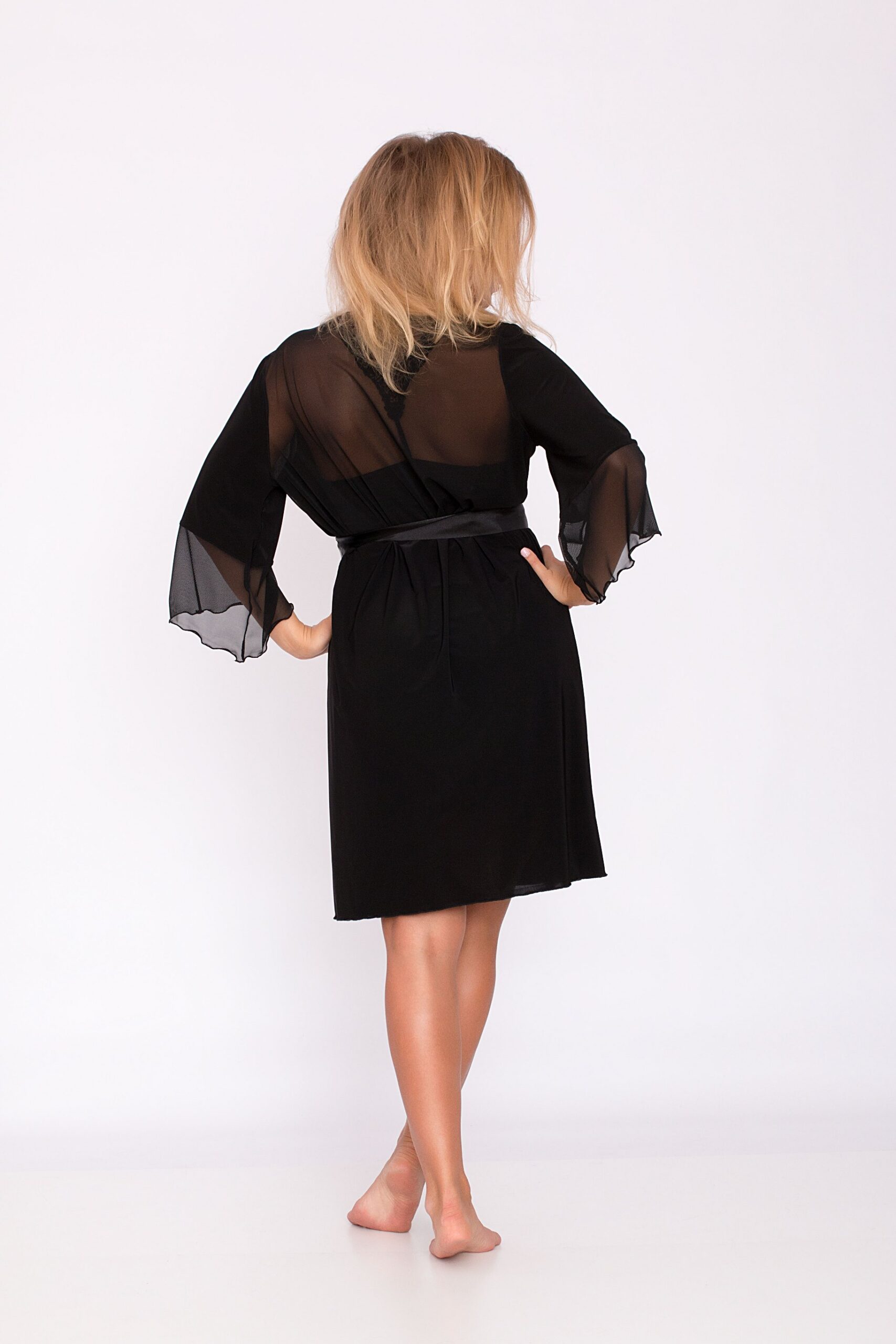 Пеньюар арт. 120 выполнен из микрофибры Венеция, на запах, с рукавом 3/4, декорированным вуалью, на спинке верх из вуали. В цвете индиго - использована синяя блестящая микрофибра, напоминающая сатин.120 пеньюар