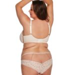 Бюстгальтер 1237 выполнен на косточках, с дополнительными боковыми поддержками, чашки мягкие, шитые из тонкой сетки телесного цвета и кружевного полотна, с боковым подкроем, спинка из стабилизирующей сетки. Бретельки на плечах с мягким тонким поролоном, не отстгиваются, регулируются по длине, на спине застжка - удлинитель на крючках, фурнитура металлическая цвета меди. Бюст сочетается с трусами 1237 .1237 Ellen M Maxi бюст