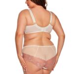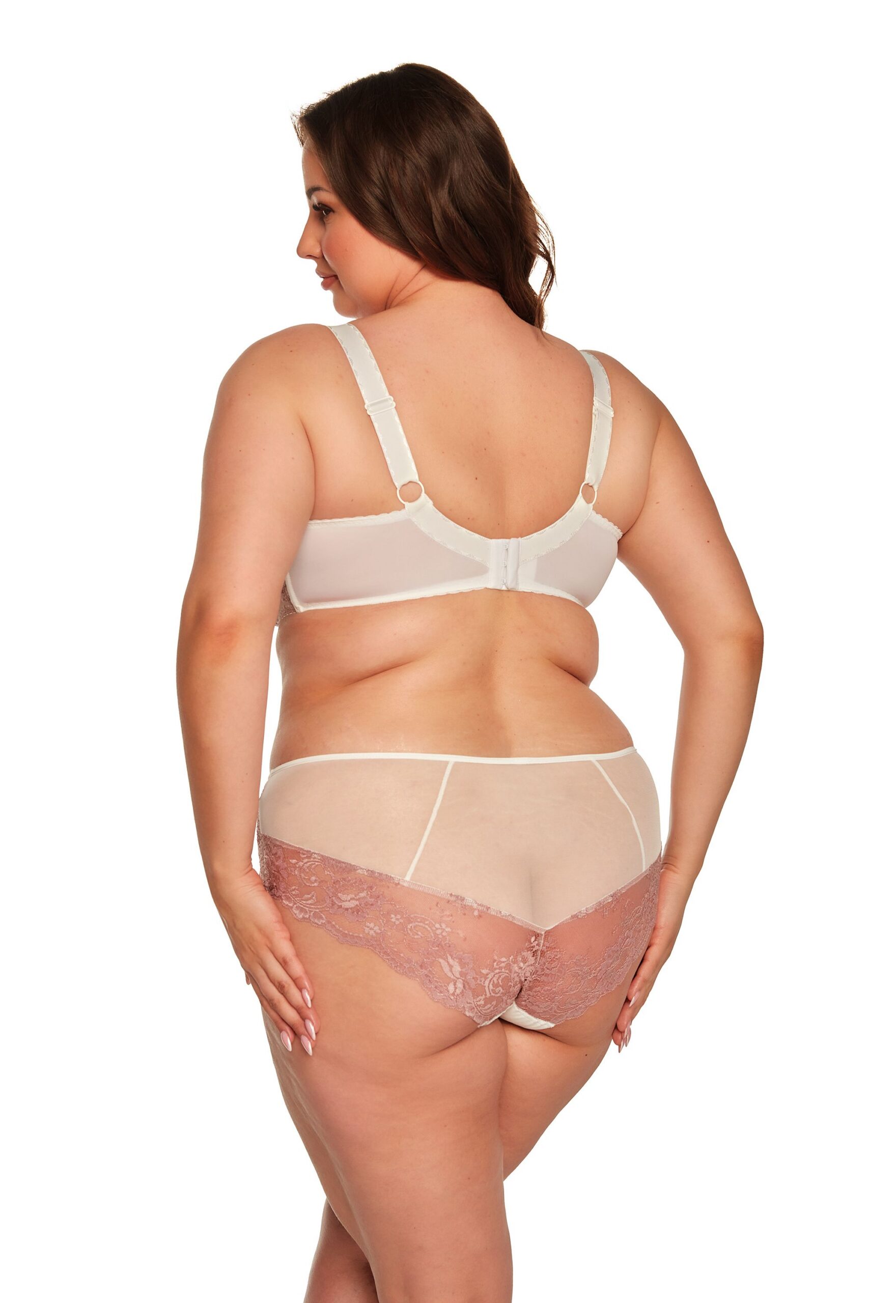 Бюстгальтер 1244 выполнен на косточках, с дополнительными боковыми поддержками, чашки шитые, нижняя часть на тонком поролоне цвета экрю, внутренняя сторона проложена хлопковым трикотажем, верхняя часть из сетки, внешняя покрыта кружевным полотном цвета античной розы, спинка из микрофибры цвета экрю. Бретельки не съмные, регулируются по длине. На спине застжка на удлинитель, фурнитура металлическая крашеная. Бюстгальтер идеально сочетается с трусиками 1244 .1244 Ranita PU Maxi бюст