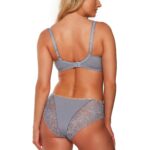 Бюстгальтер 1249 выполнен на косточках, чашки шитые, нижняя часть на тонком поролоне телесного цвета, внутренняя сторона прошита хлопковым трикотажем, верхняя часть чашки сетки телесного цвета, внешняя из кружевного полотна, спинка из микрофибры. Бретельки не отстгиваются, регулируются по длине, на спине застжка - удлинитель на крючках, фурнитура металлическая цвета меди. Бюст сочетается с трусами 1248 , 1249 .