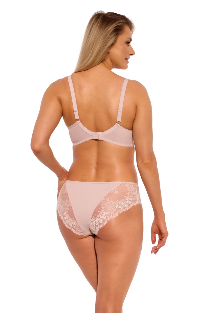 Бюстгальтер 1262 выполнен в цвете жемчуг на косточках, с дополнительными боковыми поддержками, чашки мягкие, шитые из тонкой сетки и кружевного полотна с ресничками, с боковым подкроем, спинка из микрофибры. Вертикальный вырез на чашке позволит модели красиво приподнять и придать форму бюсту. Бретельки не отстгиваются, регулируются по длине, на спине застжка - удлинитель на крючках, фурнитура металлическая крашеная. Бюст сочетается с трусами 1262 .