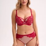 Трусики бразильяна 1274 со средней линией талии выполнены в красном цвете из кружевного полотна и мягкой телесной сетки, со вставками из телесной микрофибры, на спинке проймы ног из красной сетки, сложенной вдвое. Ластовица из 100 хлопка. Идеально сочетаются с бюстгальтерами 1273 , 1274 .