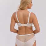 Бюстгальтер 1341 выполнен на косточках, с дополнительными боковыми поддержками, чашки шитые, нижняя часть на тонком поролоне цвета экрю, внутренняя сторона прошита хлопковым трикотажем, верхняя часть чашек из сетки, сложенной вдвое, внешняя сторона чашек и вернхняя из сетки с цветочной вышивкой нитью в тон, спинка из микрофибры. Бретельки не отстгиваются, регулируются по длине, на спине застжка - удлинитель на крючках, фурнитура металлическая. Бюст сочетается с трусами 1341 .1341 Liana PU бюст