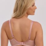 Бюстгальтер 1343 выполнен на косточках, с дополнительными боковыми поддержками, чашки мягкие, шитые из кружева, продублированы сеткой в тон, веррхняя часть чашек из сетки, сложенной вдвое, спинка из двух слоев сетки. Бретельки не отстгиваются, регулируются по длине, на спине застжка - удлинитель на крючках, фурнитура металлическая. Бюст сочетается с трусами 1343 .