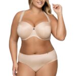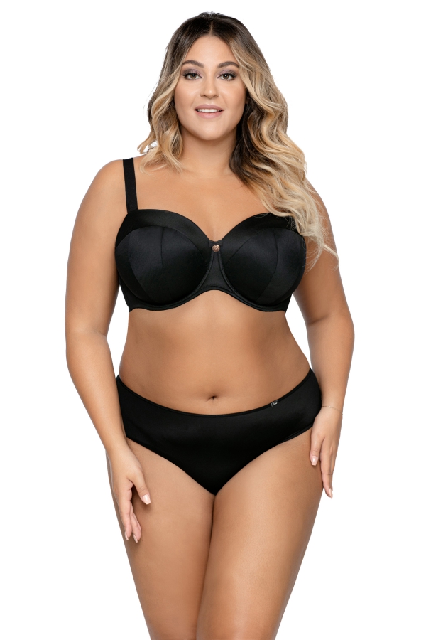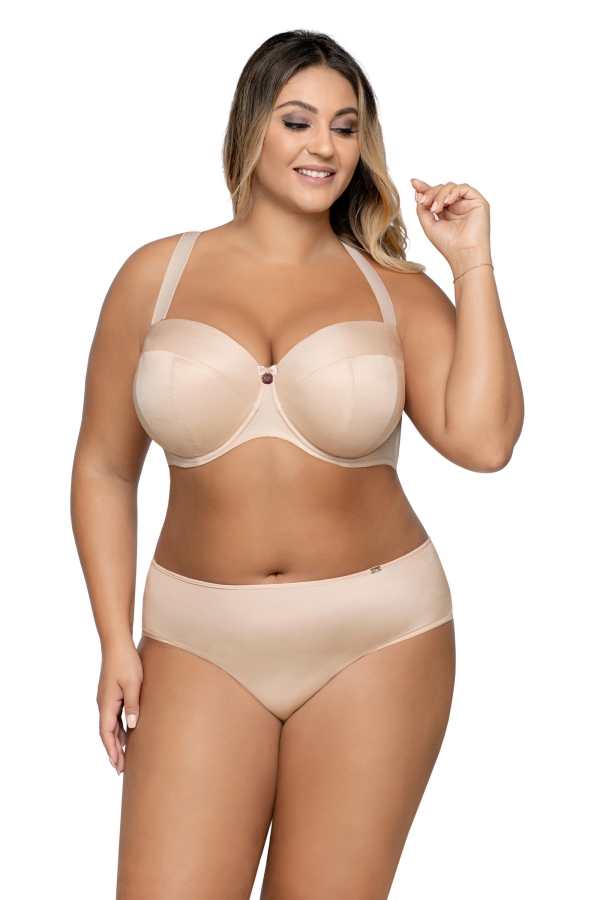 Бюстгальтер 1787 балконет выполнен на косточках, с дополнительными боковыми поддержками, чашки шитые на тонком поролоне, внешняя сторона из гладкого трикотажа. Бретельки отстгиваются, регулируются по длине. Силиконовая полоска на спинке позволяет носить бюстгальтер без бретелей. Бретели в телесном цвете можно пристегивать в двух положениях в зависимости от индивидуальных предпочтений - ближе или дальше от подмышечной впадины. Пояс из плотной корректирующей сетки. На спине застжка на удлинитель, количество крючков в ряду застжки увеличивается пропорционально размеру бюстгальтера. Бюстгальтер идеально сочетается с трусиками арт. 17871787 U maxi бюст