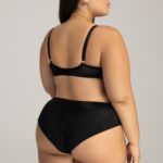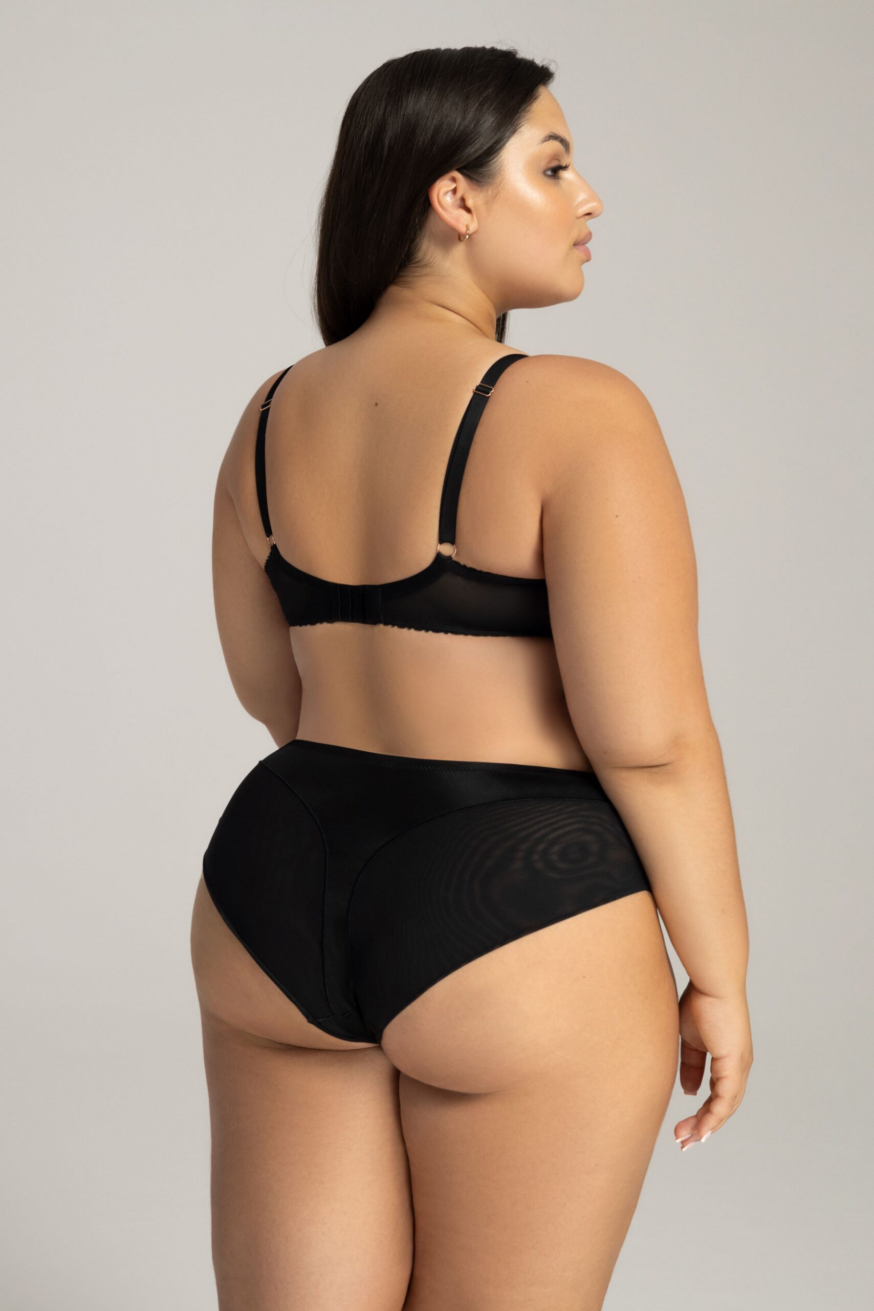 Бюстгальтер 1824/4 выполнен на косточках, чашки мягкие, шитые из сетки телесного цвета и черной сетки, не сшитыми между собой, с дополнительным боковым подкроем с тонким поролоном телесного цвета, между чашек металлическое украшение с кристаллом и эмалью, спинка из стабилизирующей сетки, бретельки не отстгиваются, регулируются по длине. На спине застжка на удлинитель на 2 или 3 крючка. Фурнитура металлическая цвета желтого золота. Бюстгальтер идеально сочетается с трусиками арт. 1824/41824/4 M бюст