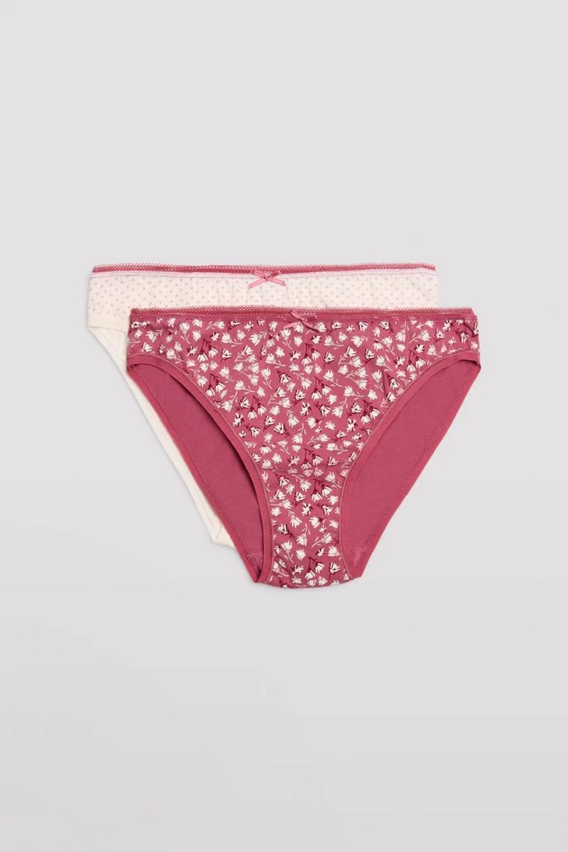 Обновите свою коллекцию нижнего белья с помощью наших хлопковых мини-трусиков в упаковке по 2 штуки. В комплект входят трусики с принтом, которые придадут вам разнообразие и стиль в повседневной жизни. На каждом трусике есть небольшой центральный бант, который добавляет нотку шарма. Эти трусики, изготовленные из мягкого и дышащего хлопка, дарят вам комфорт и прохладу в течение всего дня, сохраняя при этом комфорт и стиль.19020 Mini Трусы слипы 2 шт. в упаковке