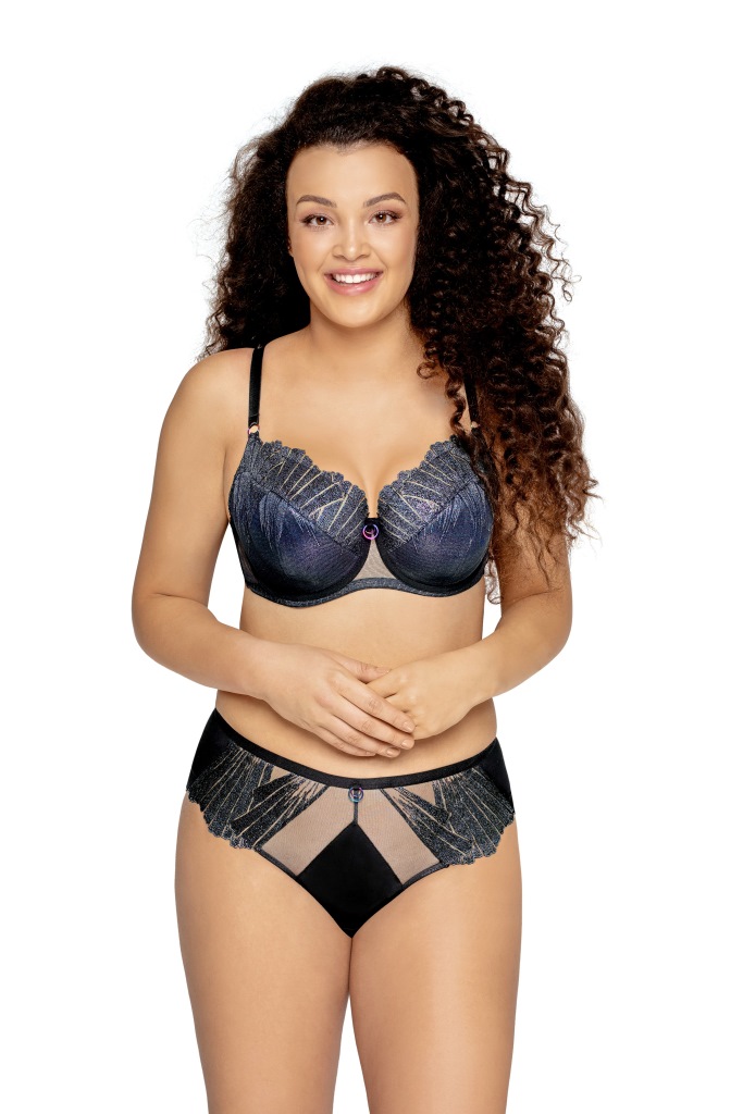 Бюстгальтер 1950 на косточках, чашки шитые, нижняя часть чашки на тонком поролоне, внутренняя сторона проложена хлопковым трикотажем, внешняя и верхняя часть чашек покрыта сеткой с блеском и с вышивкой блестящей нитью. Бретельки не отстгиваются, регулируются по длине. На спине застжка на удлинитель. Бюстгальтер идеально сочетается с трусиками 1950, 1951, 1952.1950 PU бюст