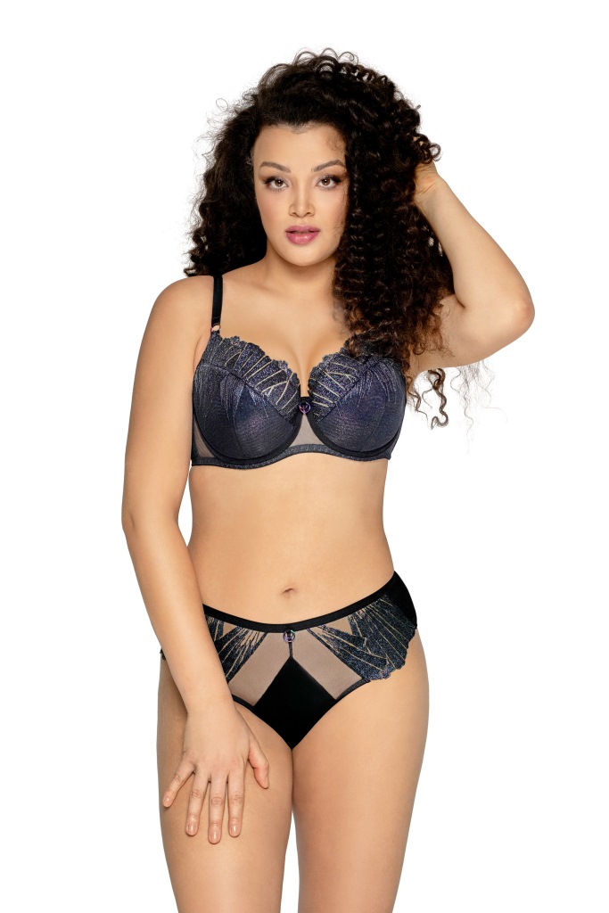 Бюстгальтер 1952 на косточках, чашки шитые на тонком поролоне, внутренняя сторона проложена хлопковым трикотажем, внешняя покрыта сеткой с блеском и с вышивкой блестящей нитью. Бретельки пришиты, регулируются по длине. На спине застжка на удлинитель. Бюстгальтер идеально сочетается с трусиками 1950, 1951,1952.1952 U бюст