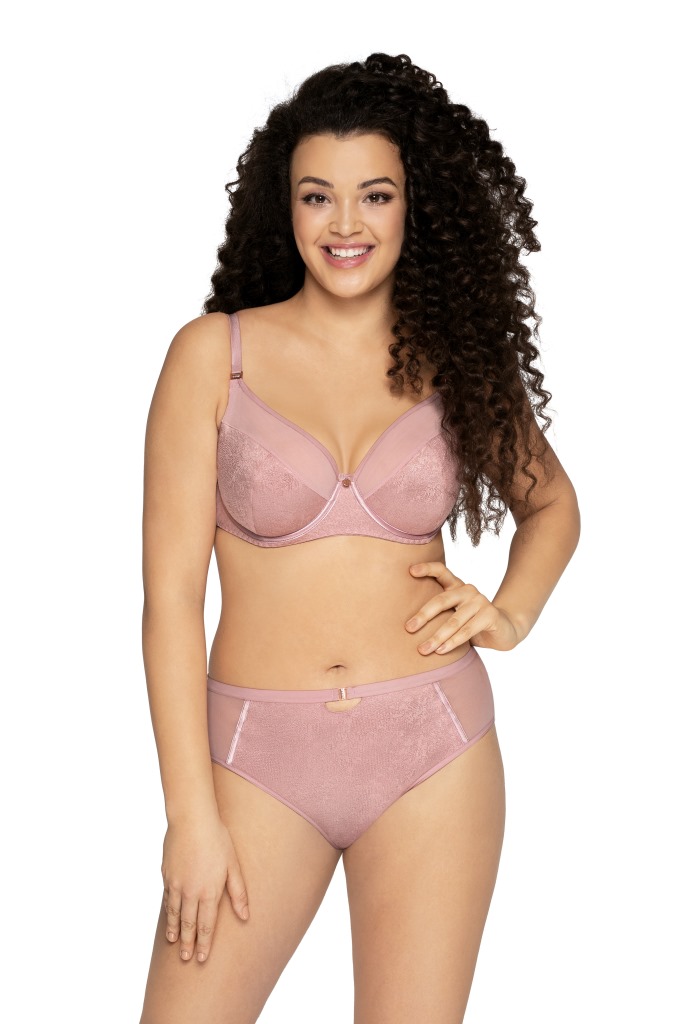 Трусики бразильяна из коллекции А 1960 спереди из ткани, имитирующей жаккард со вставками из сетки, спинка из эластичного трикотажа и сетки, сложенной вдвое. Ластовица проложена 100 хлопком. Трусики идеально комплектуются с бюстгальтерами арт. 1960, 1961, 1962.
