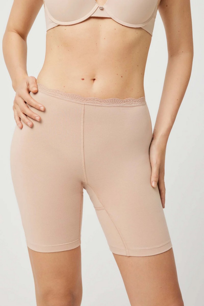 Корректирующие панталоны с высокой линией талии от трения внутренней части бедра. Из тонкого, упругого, эластичного полотна - 95% хлопок. Незаметные под одеждой, сверху отделаны рюшей. Mast have на жаркую погоду от натирания!19686 Шорты от натирания