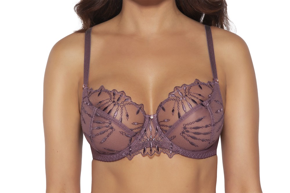Бюстгальтер 2035 в цвете Кофе по-ирландски выполнен с шитыми мягкими чашками на косточках, из 2 слоев сетки с вышивкой. Бретельки регулируются по длине, не отстгиваются. Пояс из стабилизирующей сетки. На спине застжка на удлинитель, количество крючков в ряду застжки увеличивается пропорционально размеру бюстгальтера. Фурнитура металлическая цвета меди. Бюстгальтер идеально сочетается с трусиками из коллекции 2035.2035 M бюст