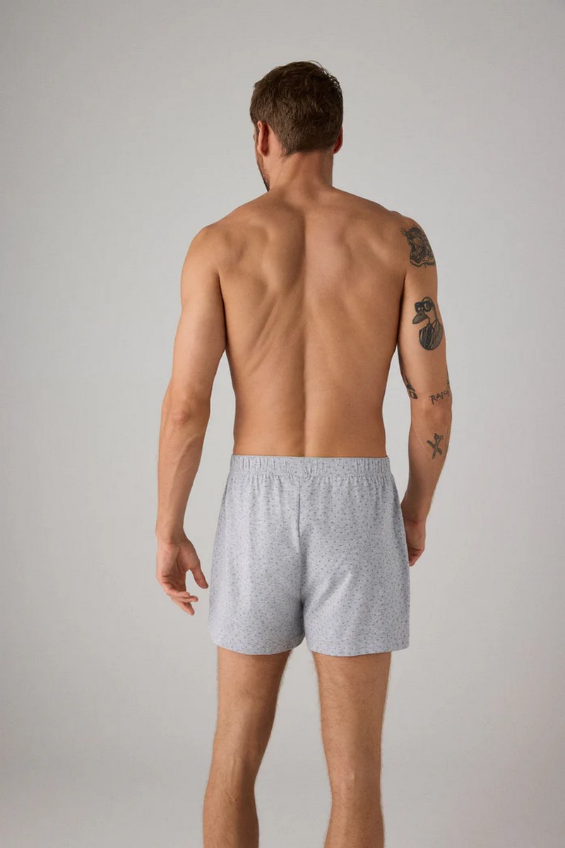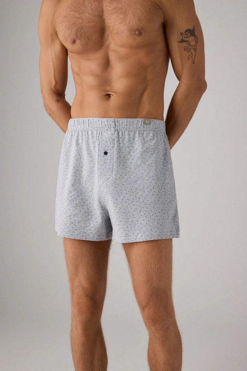 Трусы-боксеры с разрезом и геометрическим принтом. Эти трусы, изготовленные из натурального хлопка, обладают мягкостью и воздухопроницаемостью для комфортного ношения в течение всего дня. Геометрический принт добавляет нотку современности и стиля, а разрез обеспечивает комфорт и легкость движений. Идеально подходит для тех, кто ищет характерный и функциональный дизайн в своем повседневном гардеробе.20373 Свободные боксеры
