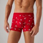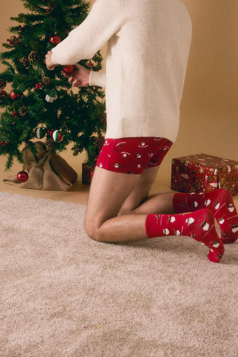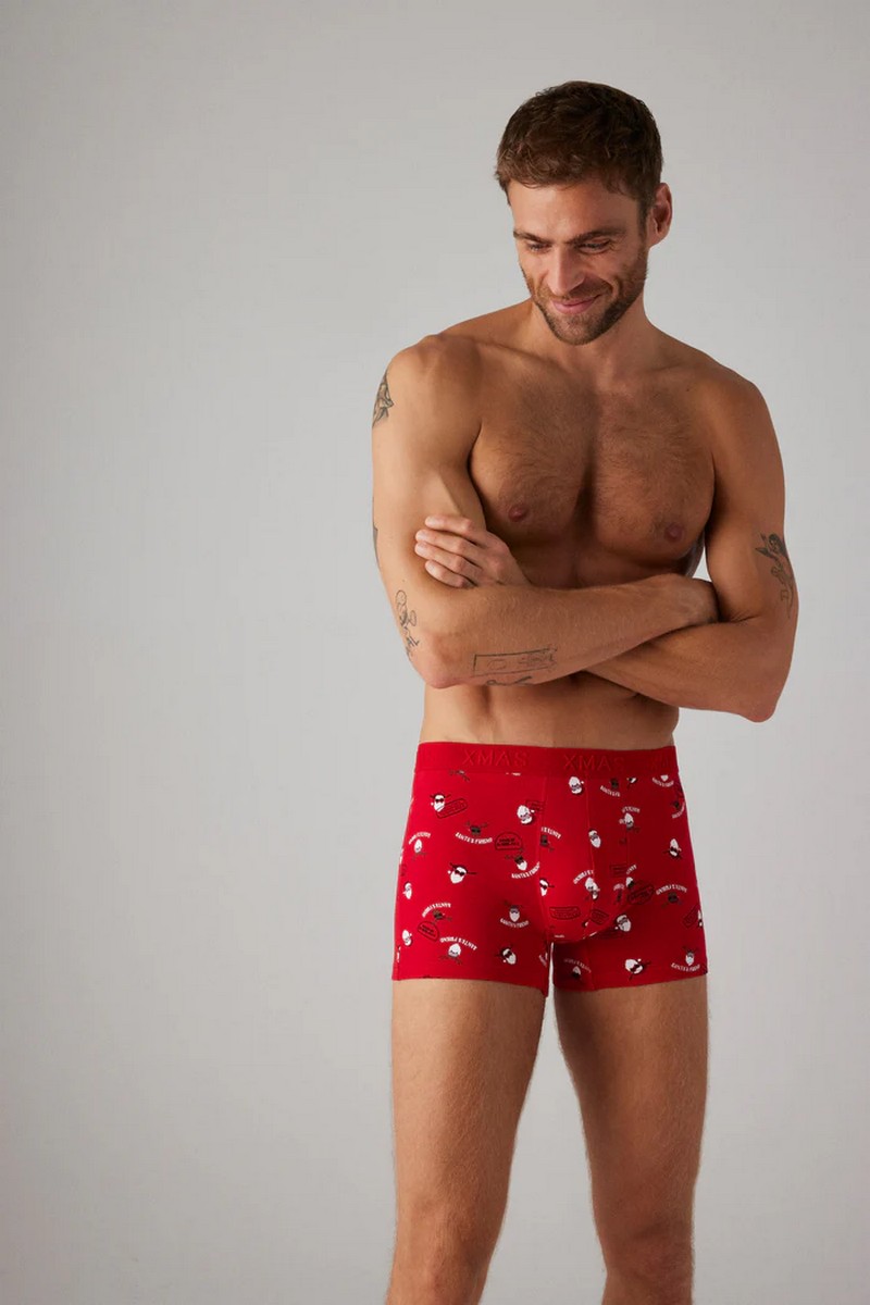 Рождественская коллекция. Комплект боксеров и носков с рождественским принтом. Этот праздничный ансамбль создан для того, чтобы добавить нотку веселья в ваш гардероб во время праздников. Боксеры и носки изготовлены из высококачественных материалов, чтобы обеспечить вам комфорт в течение всего дня, пока вы погружаетесь в атмосферу праздника. Предпочитаете ли вы классические мотивы, такие как олени, елки или снежинки, этот комплект придаст вам праздничный и уютный вид в этот особенный сезон. Боксеры: 95% хлопок, 5% эластан; Носки: 73% хлопок, 25% полиамид, 2% эластан.