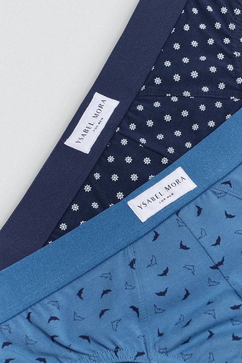 Мужские трусы слипы. Набор из 2 трусов с принтом. Включает по одному каждого цвета. Изготовлены из натурального хлопка с добавлением эластана. Эластичная широкая резинка на талии для удобной посадки.