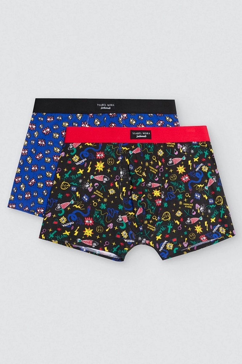 Облегающие мужские боксеры. Набор из 2 трусов с принтом. Включает по одному каждого цвета. Изготовлены из натурального хлопка с добавлением эластана. Эластичная резинка. Логотип Ysabel Mora.20409 Облегающие боксеры 2 шт. в упаковке