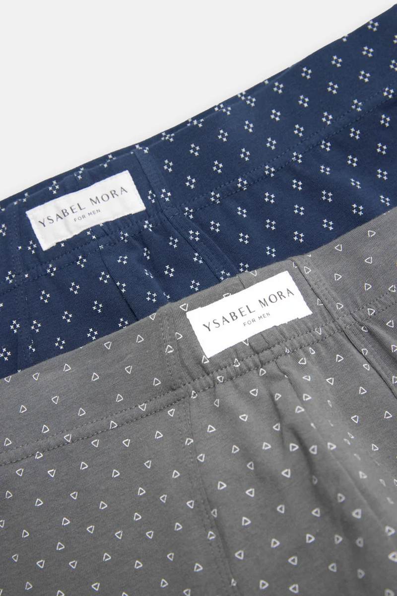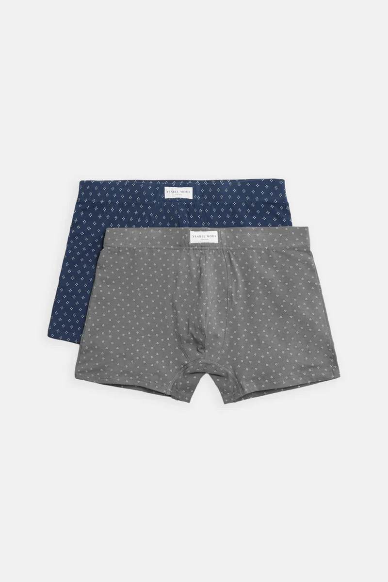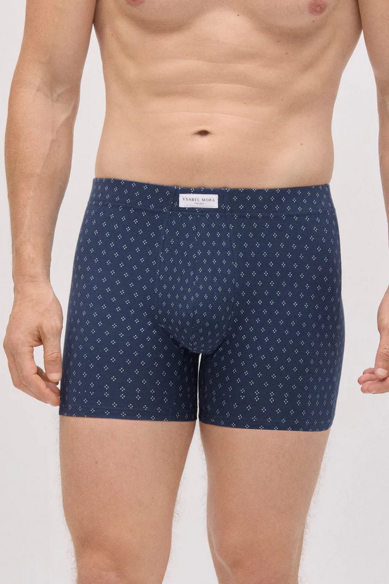 Комплект от европейского производителя Ysabel Mora из 2 боксеров с принтом, изготовленных из натурального хлопка с примесью эластана для оптимального комфорта. Каждое нижнее белье отличается своим цветом и принтом, что вносит разнообразие и индивидуальность в интерьер гардероба. Широкая резинка для идеальной посадки. Натуральные волокна придают мягкость и адаптивность. Мужественность и комфорт в повседневном белье.20428 Облегающие боксеры 2 шт. в упаковке
