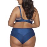 Комфортный бюстгальтер арт. 2057 М выполнен на основе модели 1396 в цвете Кобальт с мягкими чашками, на косточках, шитыми из сетки телесного цвета с вышивкой синей нитью. Бюстгальтер создан с учтом анатомических особенностей корпулентных женщин, благодаря вертикальным швам на чашечках оптически уменьшает бюст, обеспечивает равномерное распределение нагрузки, формирует красивую линию декольте. Пояс из эластичного сетчатого полотна и микрофибры. Бретельки регулируются по длине, не отсегиваются, на спине застжка на удлинитель, фурнитура металлическая цвета меди. Королевский кобальт на соблазнительно прозрачном тюле главный мотив модели 2057. Чувственная вышивка, поднимающаяся вверх нежной короной, придает очарования мягким чашкам, нежно моделирующим грудь. Бюстгальтер идеально сочетается с трусиками арт. 2056, 2057.2057 M бюст (сапфир)