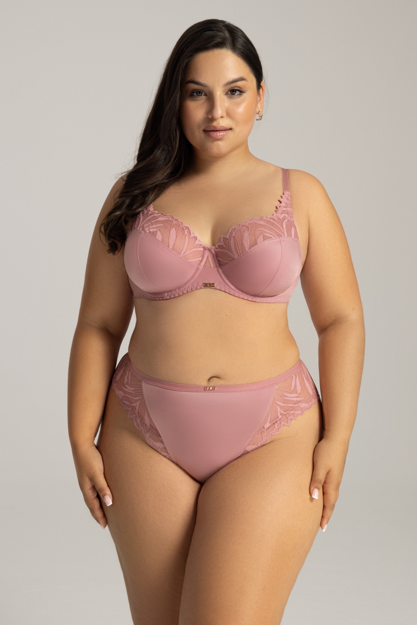 Бюстгальтер 2106 выполнен на основе модели 1396 в цвете розовый пион на косточках, чашки шитые, нижняя часть из неэластичного трикотажа, верхняя часть из цветочного кружева, продублированного сеткой в тон для лучшего прилегания к груди. Пояс из плотной стабилизирующей сетки. Бретельки не отстгиваются, регулируются по длине, на спине застжка - удлинитель на 2 и 3 крючка, фурнитура металлическая цвета меди. Бюстгальтер идеально комплектуется трусиками 2105, 2106, 2107.