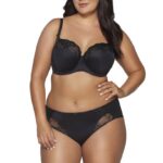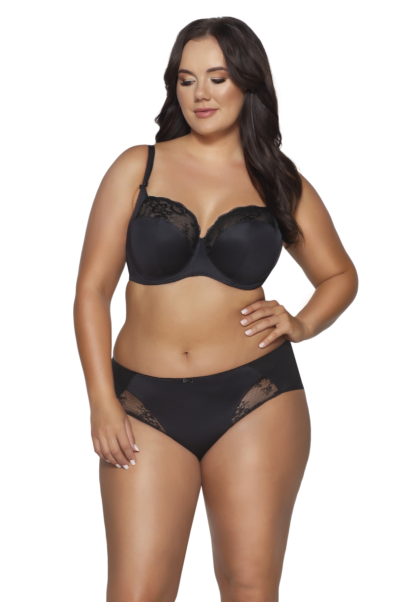 Комфортный бюстгальтер 2111 выполнен на основе модели 1130 на косточках, чашки мягкие, шитые из плотной ткани и кружева, с боковым подкроем. Пояс из плотной стабилизирующей сетки. Бюстгальтер создан с учтом анатомических особенностей корпулентных женщин, благодаря вертикальным швам на чашечках оптически уменьшает бюст, обеспечивает равномерное распределение нагрузки, формирует красивую линию декольте. Бретельки не отстегиваются, регулируются по длине, на спине застжка на удлинитель на 2 или 3 крючка, фурнитура металлическая. Бюстгальтер идеально сочетается с трусиками арт. 2110, 2111, 2112.2111 M бюст