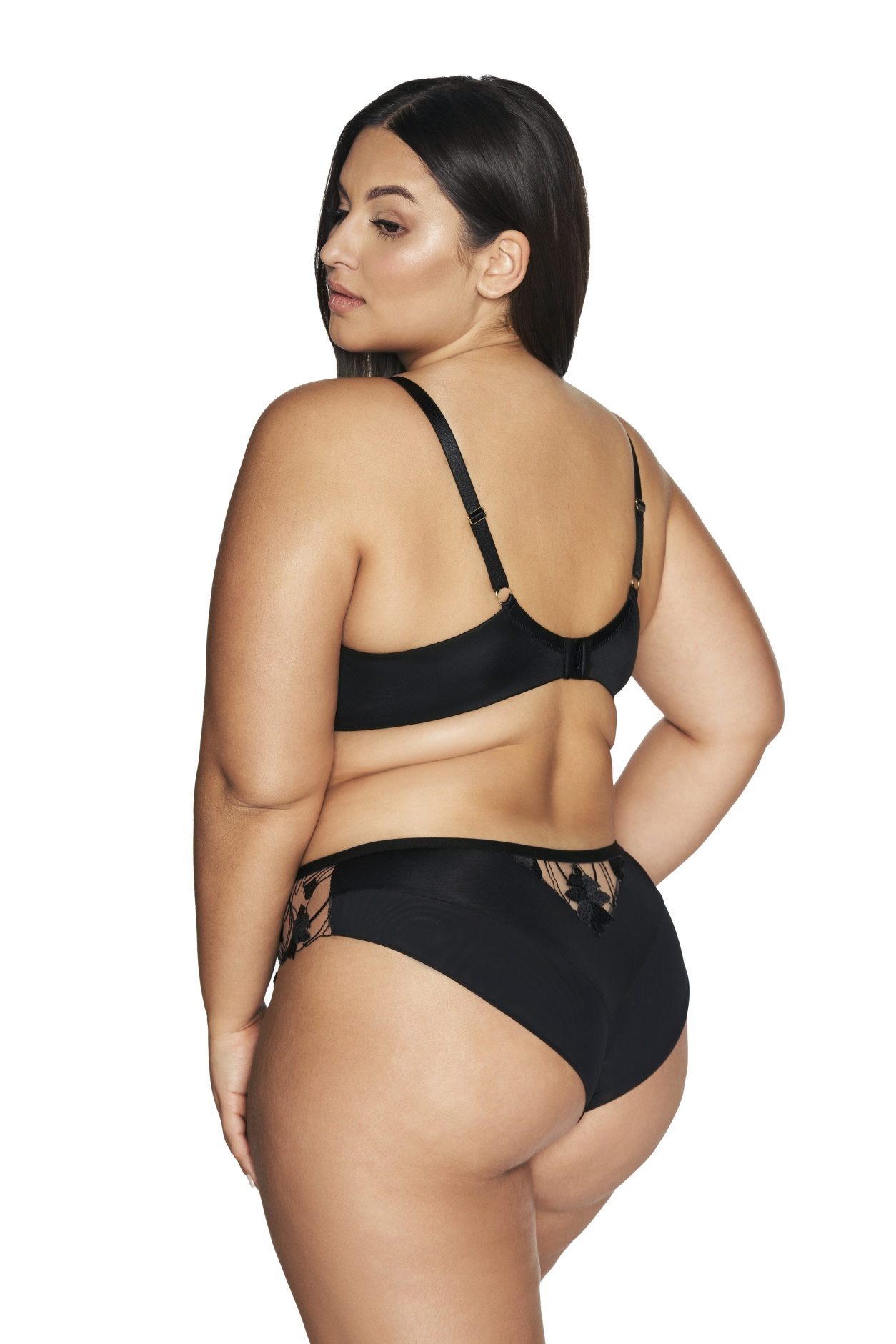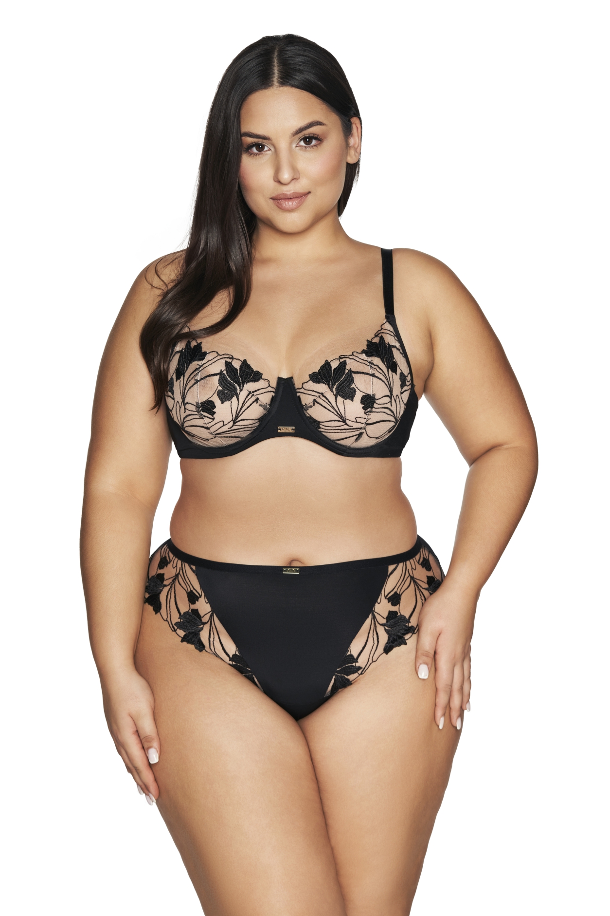 Бюстгальтер А 2117 выполнен на основе бюста 1396 на косточках, чашки мягкие, шитые из телесной сетки с вышивкой черной нитью. Со вкусом сплетенные, нежные цветы поднимаются вверх, придают очарования мягким чашкам, нежно моделирующим грудь, спинка из микрофибры продублирована стабилизирующей сеткой. Бретельки не отстгиваются, регулируются по длине, на спине застжка - удлинитель на крючках на 2 или 3 крючка, фурнитура металлическая цвета желтого золота. Бюстгальтер идеально комплектуется трусиками арт. 2117.