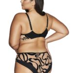 Бюстгальтер А 2125 выполнен на основе бюста 1130 на косточках, чашки шитые из телесной сетки, внешняя сторона чашек-топ из эластичного телесного тюля с флокированными черными лентами с кокетливой золотой петелькой. Резинки, бретели, окантовка косточек контрастного черного цвета. Пояс двойной из черной стабилизирующей сетки и телесной флокированной сетки, продублированной телесной сеткой. Бретели не отсегиваются, регулируются по длине, фурнитура металлическая цвета желтого золота. На спине застежка-удлинитель на 2 или 3 крючка. Бюстгальтер идеально комплектуется трусиками арт. 2124, 2125.2125 M Maxi бюст