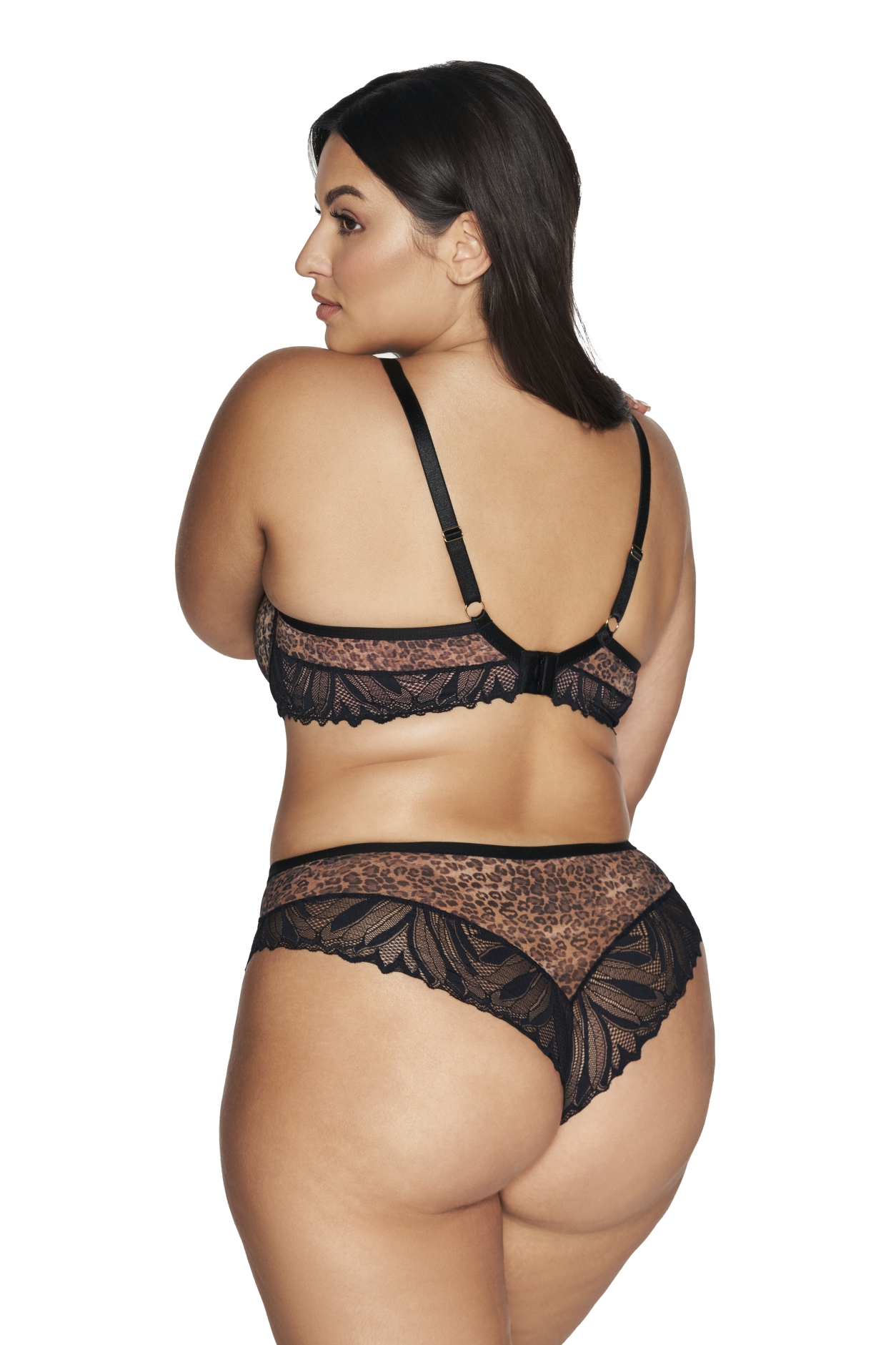 Комфортный бюстгальтер арт. 2132 выполнен на основе модели 1030 с шитыми чашками на косточках, нижняя часть чашек на тонком поролоне с внутренней стороны проложена хлопковым трикотажем, внешняя сторона из сетки с хищным принтом, верхняя часть чашки из телесной сетки, сложенной вдвое и прикрытой кружевом. Восхитительная композиция из пятнистого трикотажа, богато переплетенного черного кружева и нежного тюля телесного цвета идеально формирует бюст. Пояс из эластичного сетчатого полотна и кружева продублирован телесной сеткой. Бретельки регулируются по длине, не отстегиваются, на спине застжка на удлинитель на 2 крючка, фурнитура металлическая цвета желтого золота. Бюстгальтер идеально сочетается с трусиками арт. 2132.2132 PU бюст