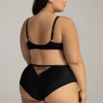 Бюстгальтер 2143 выполнен на основе модели 1030 на косточках, чашки шитые, нижняя часть на тонком поролоне телесного цвета, внутри проложена хлопковым трикотажем, снаружи из черной сетки, верхняя часть чашки из телесной сетки, сложенной вдвое, и сетки с хищным принтом и вышивкой бежево-золотой нитью. Бретельки не отстгиваются, регулируются по длине, фурнитура цвета желтого золота, пояс из эластичного сетчатого полотна разной степени плотности. На спине застжка на удлинитель, количество крючков в ряду застжки увеличивается пропорционально размеру бюстгальтера от 2 до 3. Бюстгальтер идеально сочетается с трусиками арт. 2143, 2144.2143 PU Maxi бюст