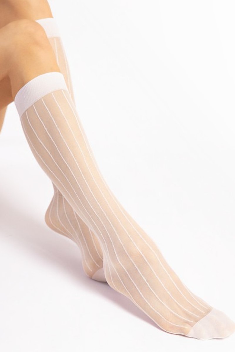 Шелковистые матовые гольфы LINEA 15 DEN с геометрической полоской. Усиление на пальцах. Комфортная резинка не пережимает ногу. Их можно сочетать во многих классических образах.