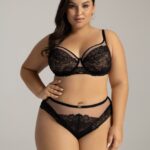 Трусики бразильяна со средней линией талии А 2145 спереди выполнены из телесной сетки, трикотажа и кружева, спинка из эластичного трикотажного полотна, проймы ног из кружева. Черное кружево на тюле телесного цвета это всегда сбывшийся залог модного успеха! Трусики идеально комплектуются с бюстгальтером арт. 2145, 2146.2145 трусы бразильянки