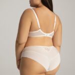 Комфортный бюстгальтер арт. 2148 М выполнен на основе модели 1130 в цвете экрю с мягкими чашками, на косточках, шитыми из сетки и кружева с ресничками, с боковым подкроем. Пояс из эластичной стабилизирующейй сетки. Бретельки регулируются по длине, не отстегиваются, на спине застжка на удлинитель на 2 или 3 крючка, фурнитура металлическая цвета розового золота. Легкое, как паутина, кружево цвета экрю обвивает мягкий бюстгальтер снизу, кокетливо взбираясь по мягким чашкам, почувствуйте прикосновение эффектного 2148. Бюстгальтер идеально сочетается с трусиками арт. 2148.