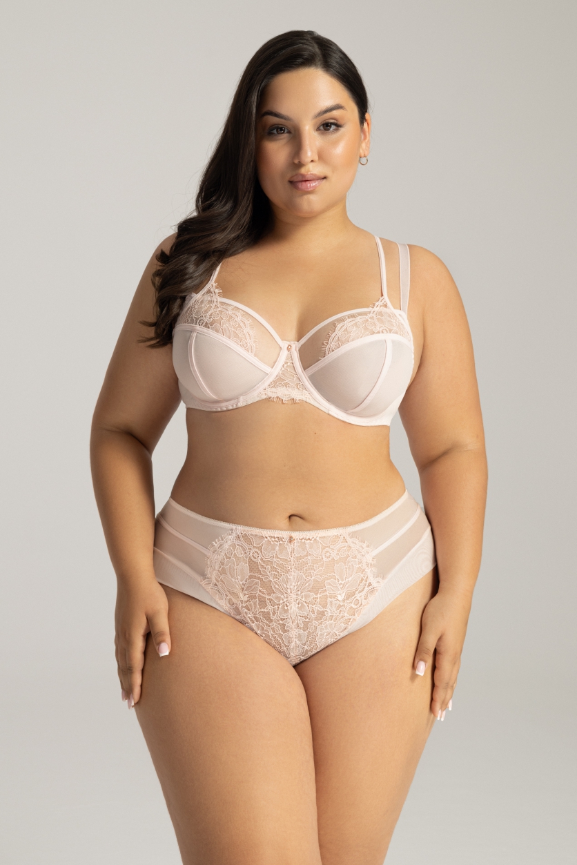 Бюстгальтер А 2164 выполнен на основе бюста 1030 в цвете пудра на косточках, чашки шитые из нежного тюля, который дополнен чувственным кружевом с ресничками, на тонких бретелях, немного заходящим за пределы бюстгальтера. Пояс из стабилизирующей сетки. Бретельки не отстгиваются, регулируются по длине, на спине застжка - удлинитель на 2 или 3 крючках, фурнитура металлическая цвета меди. Нижнее белье пудрового цвета незаменимая вещь в вашем весенне-летнем гардеробе! Бюстгальтер идеально комплектуется трусиками арт. 2163, 2164.2164 M бюст