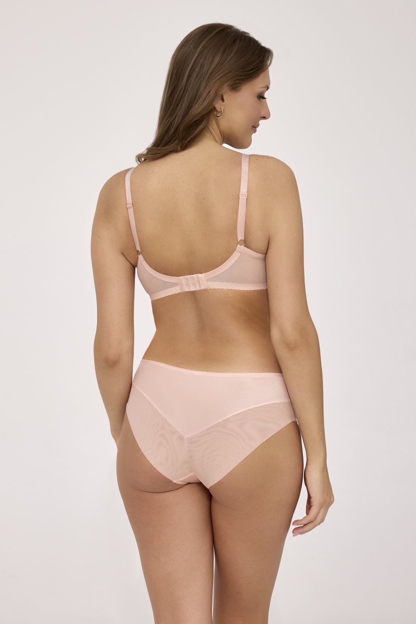 Трусики слип 2222 в цвете цвете Абрикос выполнены спереди из микрофибры,эластичной сетки и кружевного полотна с цветочным рисунком, с ресничками, спинка из микрофибры и сетки, сложенной вдвое. Нежный абрикосово-кремовый оттенок прекрасно оттеняет загар и добавляет свежести любому образу. Ластовица проложена 100 хлопком. Трусики идеально комплектуются с бюстгальтером арт. 2221, 2222.2222 трусы