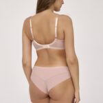 Бюстгальтер 2224 в цвете бархатисто-розовый, выполнен на основе бюста 1396, на косточках, чашки мягкие, шитые из сетки телесного цвета и роскошного кружева с цветочным рисунком, с ресничками, пояс из эластичного сетчатого полотна, бретельки не отстгиваются, регулируются по длине. На спине застжка на удлинитель, количество крючков в ряду застжки увеличивается пропорционально размеру бюстгальтера от 2 до 3, фурнитура металлическая цвета розового золота. Модель 2224 это романтическое предложение в пудрово-розовом цвете, украшенное контрастным кремовым кружевом. Бюстгальтер идеально сочетается с трусиками арт. 2223, 2224.2224 M бюст