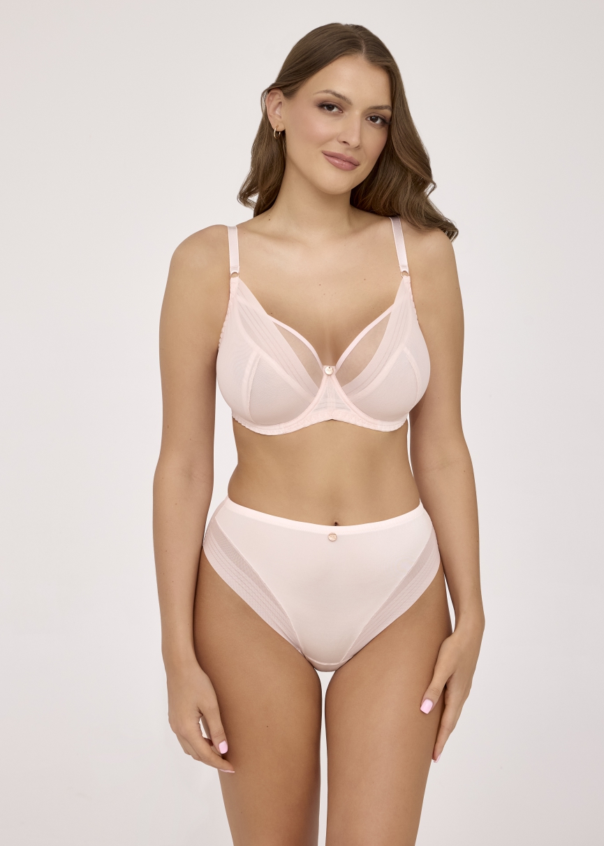 Бюстгальтер 2231 в цвете пудровый из коллекции выполнен на основе бюста 1824 на косточках, чашки мягкие, шитые из сетки разных видов, не сшитыми между собой, с устойчивой боковой панелью из тонкого поролона идеально собирают грудь из-под подмышек, естественно округляя ее в размерах 65 ,, 70 ,,, 80 ,,, 85 , ,, 90 , , , 95 , , , 100 , , , 105 , , спинка из стабилизирующей сетки, бретельки не отстгиваются, регулируются по длине. На спине застжка на удлинитель на 2 или 3 крючка. Фурнитура металлическая цвета розового золота. Пастельный пудровый оттенок придает модели романтичность и женственность, сохраняя при этом элегантность и современность. Бюстгальтер идеально сочетается с трусиками арт. 2231.Размеры 65, 65, 70, 70, 70, 75, 75, 75, 75, 80, 80, 80, 85, 85, 90 имеют матовые бретели, а остальные размеры глянцевые