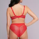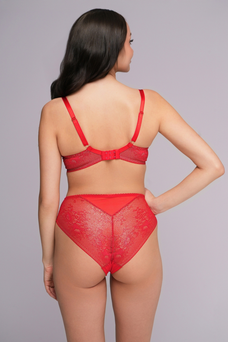 Элегантный и чувственный бюстгальтер 2252 с мягкими чашками на косточках выполнен на основе бюста 2200, с устойчивой боковой панелью из корректирующей сетки, огненно-красное блестящее кружево на тюле телесного цвета подчеркивает соблазнительно круглый вырез. Пояс из кружевного полотна продублирован телесной сеткой. Бретельки не отстгиваются, регулируются по длине, на спине застжка - удлинитель на 2-3 крючка, фурнитура металлическая цвета розового золота. Бюстгальтер идеально комплектуется трусиками арт. 2127, 2128, 2252.2252 M бюст