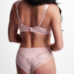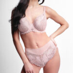 Бюстгальтер А 2309 выполнен в цвете мерцание, на косточках, чашки шитые из восхитительного, мерцающего серебристым, нежно-розового кружева, которое изящно смотрится на коже, продублированы сеткой в тон. Пояс из эластичного сетчатого полотна. Бретельки не отстгиваются, регулируются по длине, на спине застжка - удлинитель на 2 и 3 крючках, фурнитура металлическая. Бюстгальтер идеально комплектуется трусиками арт. 2153, 2154, 2155, 2304, 2309.2309 M бюст